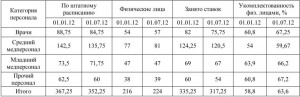 Укомплектованность штатов в разрезе категорий персонала в целом по МУЗ «5 ДИКБ» по состоянию на 01.01.2012 г. и на 01.07.2012 г. составляла: