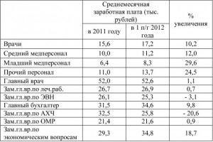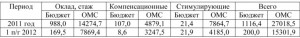 Среднемесячный заработок по категориям персонала в 2011 году, в 1-ом полугодии 2012 года составляет: