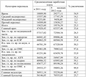 Среднемесячный заработок по категориям персонала в 2011 году, за 8 месяцев 2012 года составляет: