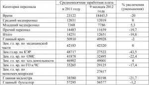 Среднемесячный заработок по категориям персонала в 2011 году, за 8 месяцев 2012 года составляет: