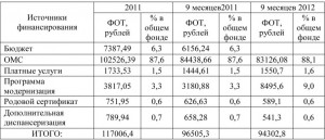 - уменьшения общего объема ФОТ на 2202,5 тыс. рублей (96505,3 тыс. рублей за 9 месяцев 2011 года, 94302,8 тыс. рублей за 9 месяцев 2012 года);